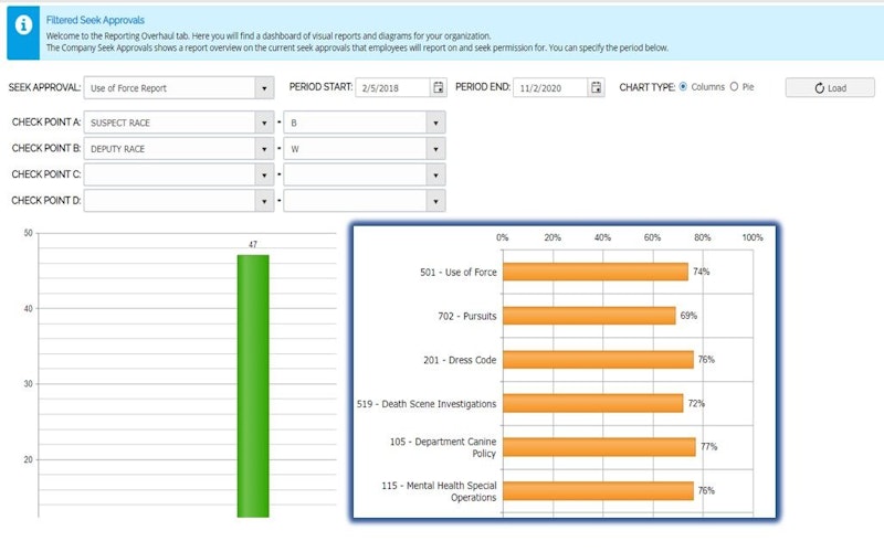 Supervisory Reviews, trend analysis, and data to quickly and accurately provide reporting where necessary. Track trends within your organization on statistics and demographic information as well as to institute a strong supervisory review process.